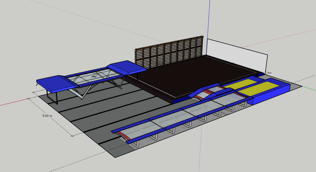 - Najwyższej klasy sprzęt akrobatyczny – eurotrampoliny, ścieżka akrobatyczna (fast track), airtracki, profesjonalna plansza gimnastyczna i sprzęt asekuracyjny.